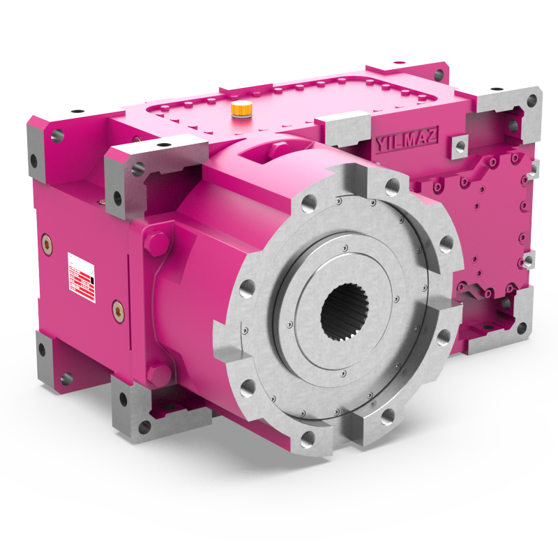 Ces réducteurs sont spécialement conçus pour les extrudeuses avec des roulements de la série 29400 et un carter d'arbre de sortie pour supporter des charges axiales élevées.